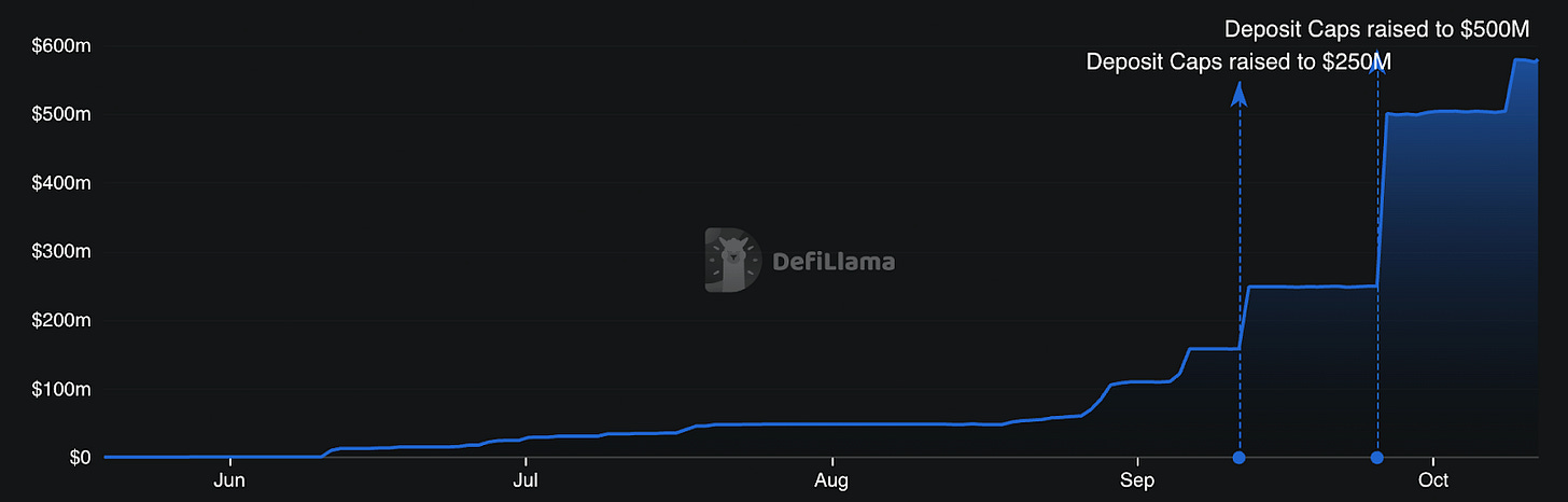 USDai continues to fill its caps every time it goes live, reaching over $580 million in TVL.