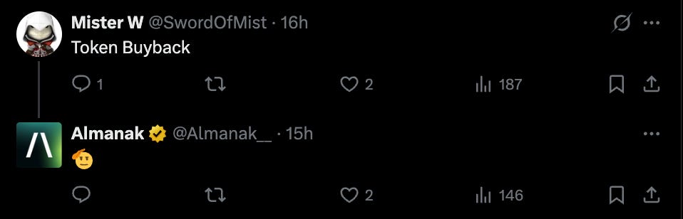 Buybacks are not actually the reason for this, but rather to kick-start a protocol-wide flywheel, where protocols (or vaults) compete to attract a share of emissions in the pool by distributing rewards and incentives. This is possible as Almanak holders (lockers and stakers) will be able to vote on which vaults should receive the most emissions. Therefore, they might be naturally inclined to vote to those redirecting the most rewards (read: bribes, incentives) to them.