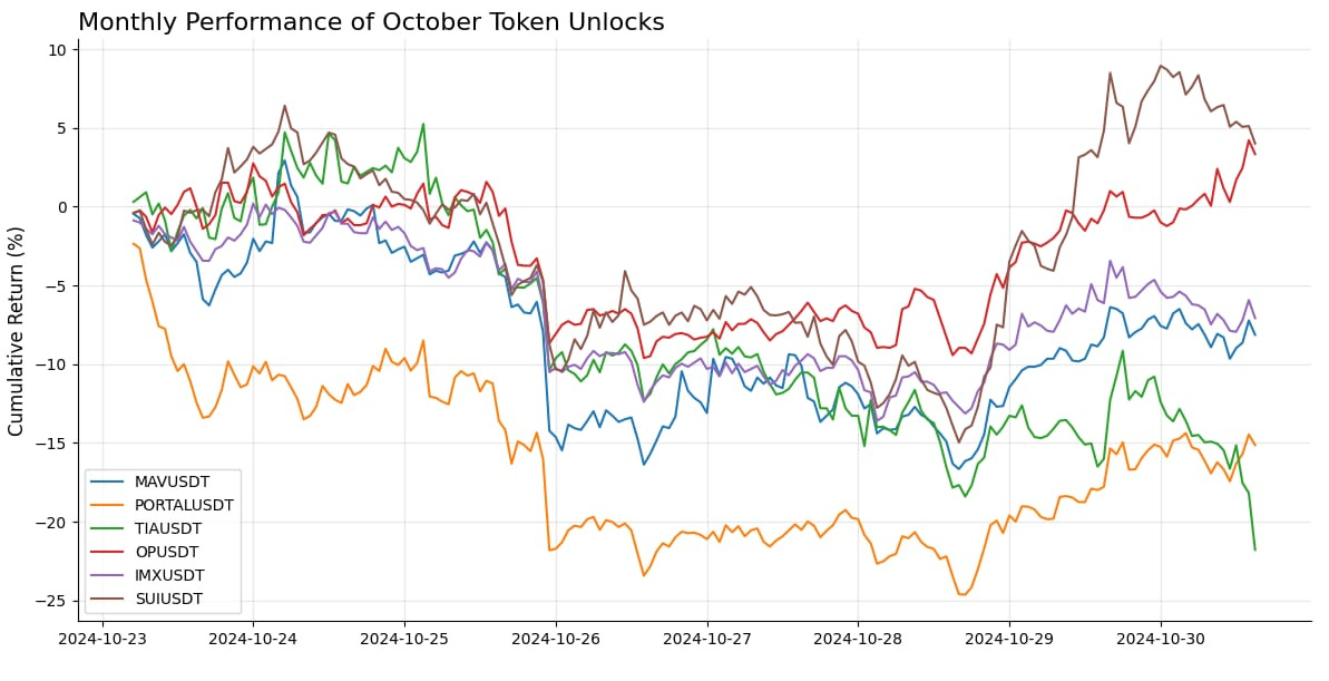 What's Different This Time? 🤔 Unlike September's unlocks, where we saw that crazy 30%+ upside, October has been teaching us a different lesson. Instead, we're seeing more calculated moves and some severe pre-unlock jitters.