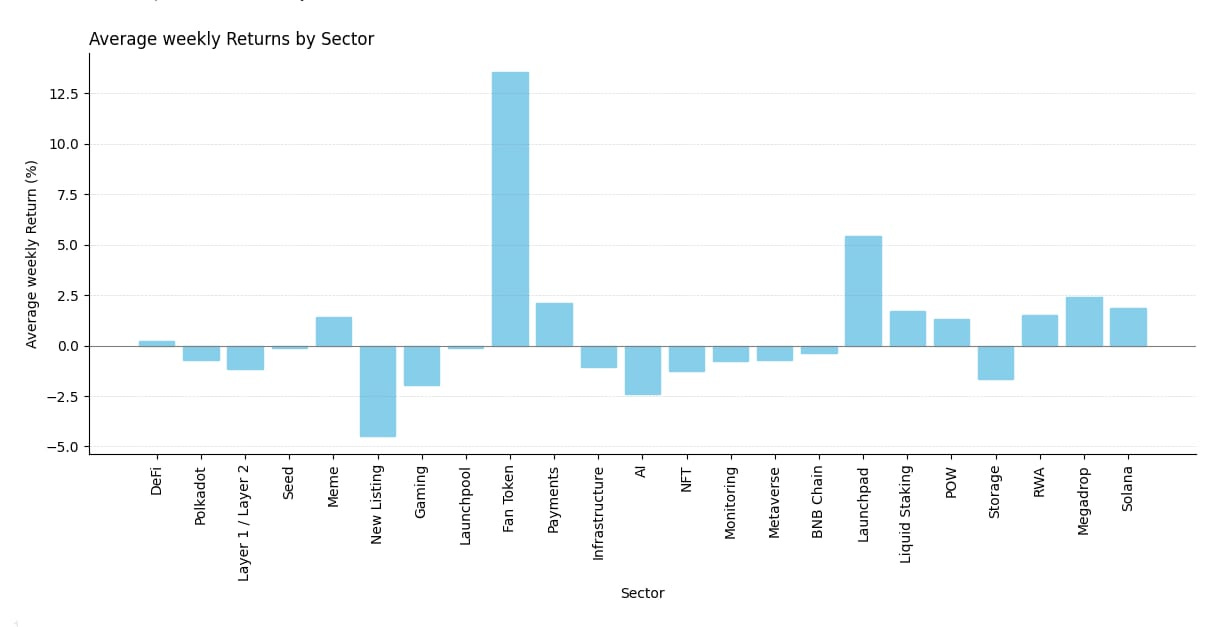 Fan tokens leading whilst new listing struggle.