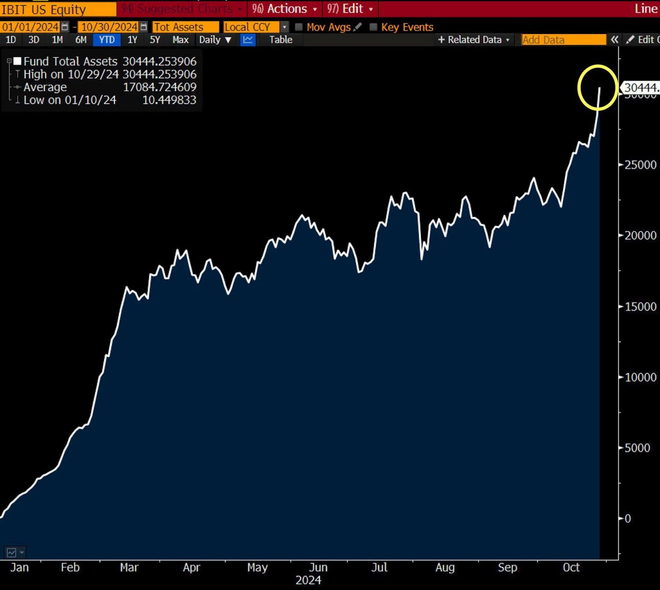 Peak daily inflow: $1B+ (March 2024)