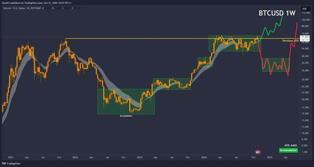 As predicted BTC continues to consolidate in the expected range, and therefore we have seen clues as to the direction we can expect next.