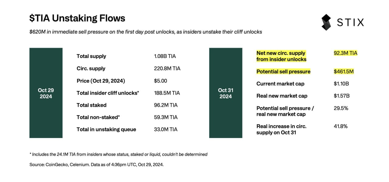 $TIA: Down 21% (yikes!) as market prices in the $923M unlock
