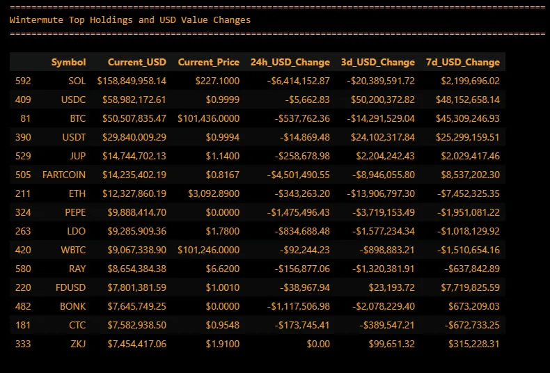 Wintermute holds over $160M worth of Solana $SOL tokens compared to no Solana holdings 2 months ago, likely for market-making services for new Solana launches and memecoins.