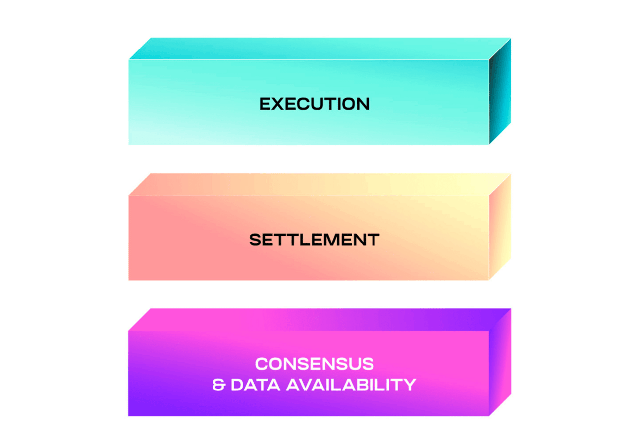 In monolithic networks (e.g. Ethereum and Solana), execution, settlement & consensus/data availability (DA) are all unified in one layer: