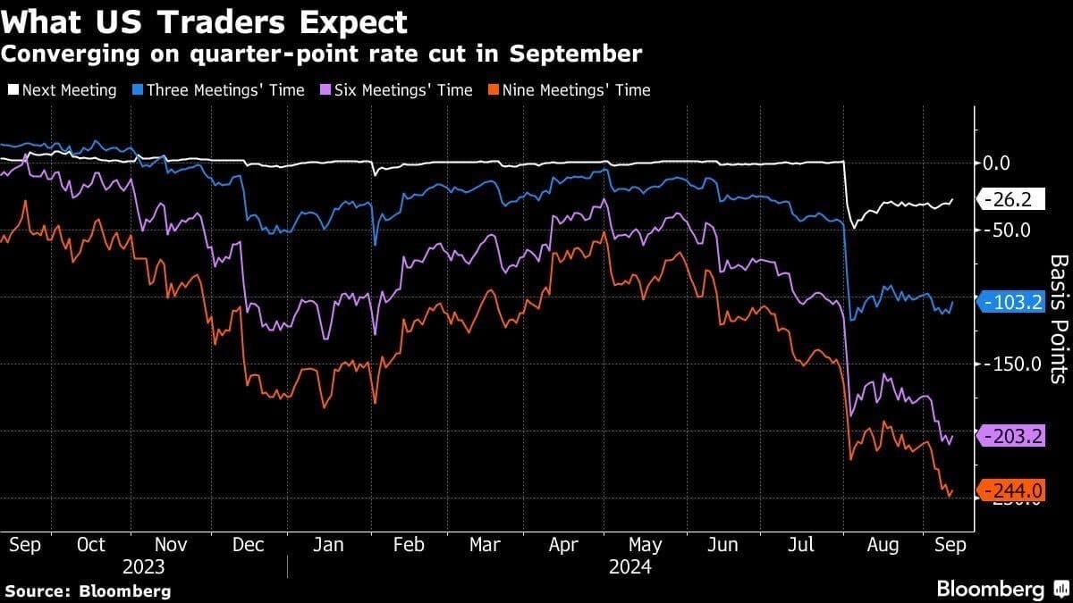 On August 1st, traders were expecting a 48 basis points cut however, now they are predicting only a 26 basis points. Meanwhile, the USD/JPY made new lows, possibly due to Harris gaining momentum in the betting markets compared to Trump.