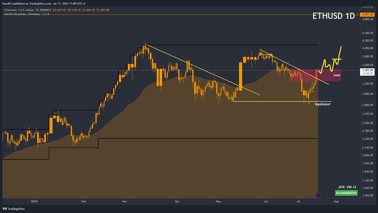 For me to be bullish again I need a few things to happen. First, the most recently formed supply needs to be fully absorbed and price needs to move higher. Once there, I want to see another smaller re-accumulation (price going sideways for a while, ideally liquidating some lows) and only then will I look to get positioned again. This might easily take another week or two. Patience frens.
