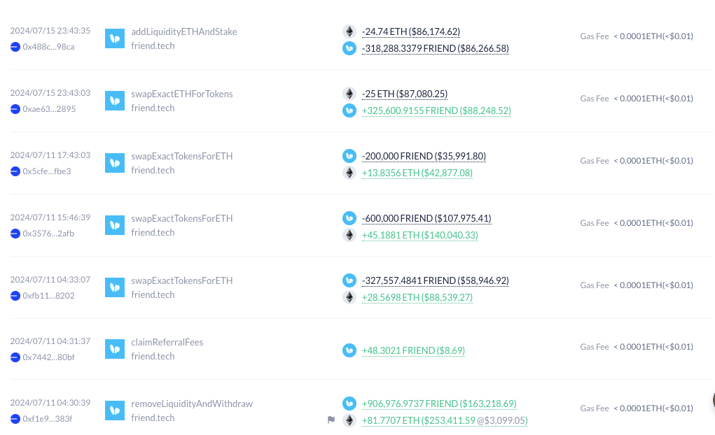 He tried to exit some of his position around 11th of July but the market did not react well and $friend touched an ATL around 0.17 cents.