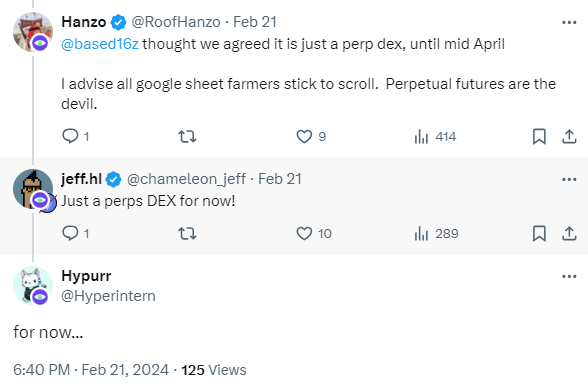 Before concluding, it's interesting to note that Jeff and Hypurr (HL core contributors) hinted4 that Hyperliquid might evolve beyond being merely a Perp DEX. This could alter our expected valuation analysis.