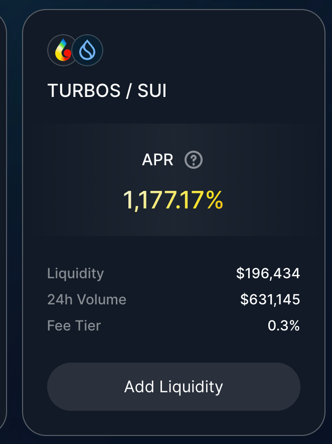 Yet, with many other trending L1 token, its underlying ecosystem tends to offer interesting opportunities. For example, one of the DEXes on SUI has a 4 figure APR farm. Be cautious that this is a pool2 and very degen.