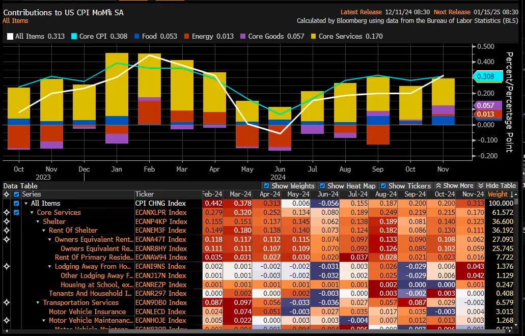 Headline CPI rose 2.9% year-over-year in December, up from 2.7%, with a monthly increase of 0.4%, exceeding the expected 0.3%. This slight acceleration in inflation was largely anticipated but still surprised markets.