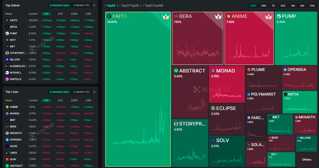 Kaito itself tops the list, as it recently announced a campaign to earn Yap points.